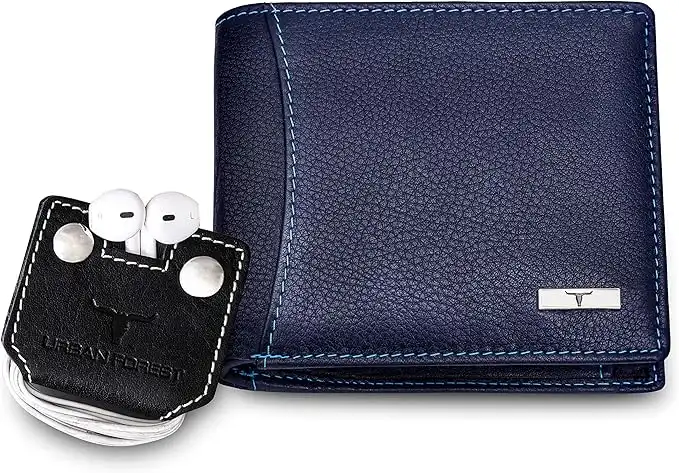 amazon.aeURBAN FOREST Oliver RFID Blocking Leather Wallet for Men, Blue with Earphone Organiser, Casual
