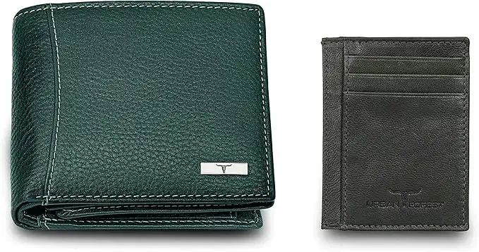 URBAN FOREST Oliver RFID Blocking Leather Wallet for Men, Green with Card Holder, Card Holder,RFID