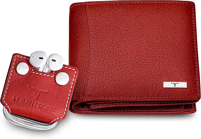 amazon.aeURBAN FOREST Oliver Red Leather Wallet & Earphone Organiser Set for Men, Red with Earphone Organiser, RFID