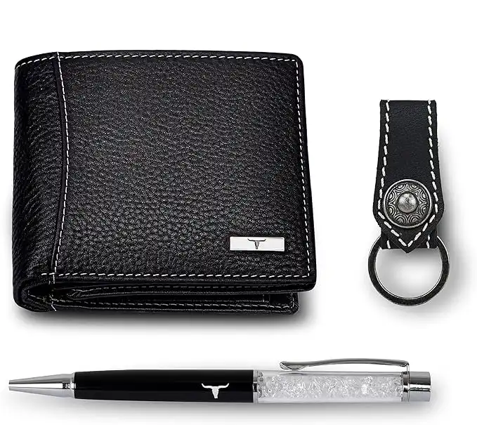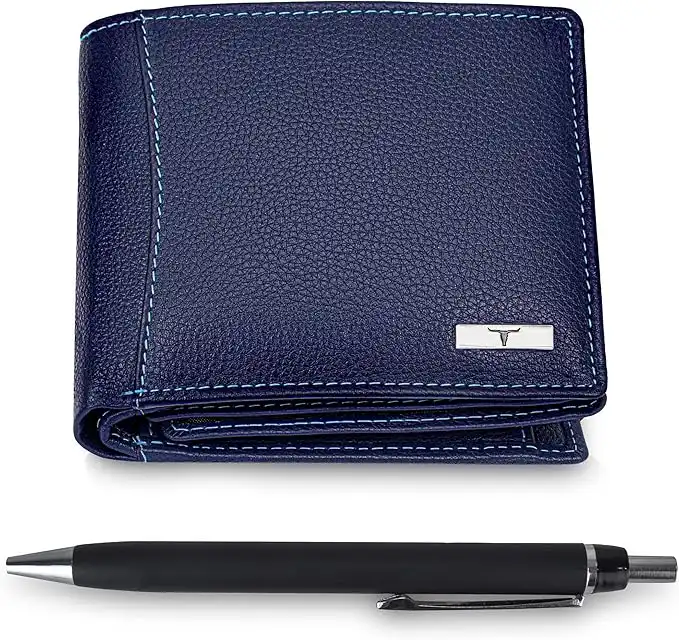 amazon.aeURBAN FOREST Oliver RFID Blocking Leather Wallet for Men, Blue with Pen, Contemporary