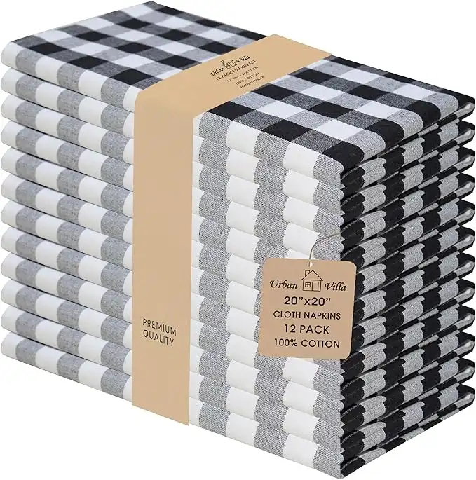 Urban Villa Dinner Napkins, Everyday Use,Premium Quality,100% Cotton, Set of 12, Size 20X20 Inch Oversized Cloth Napkins with Mitered Corners, Ultra Soft, Durable Hotel Quality (Black) — Price History & Tracker | DeserTracker
