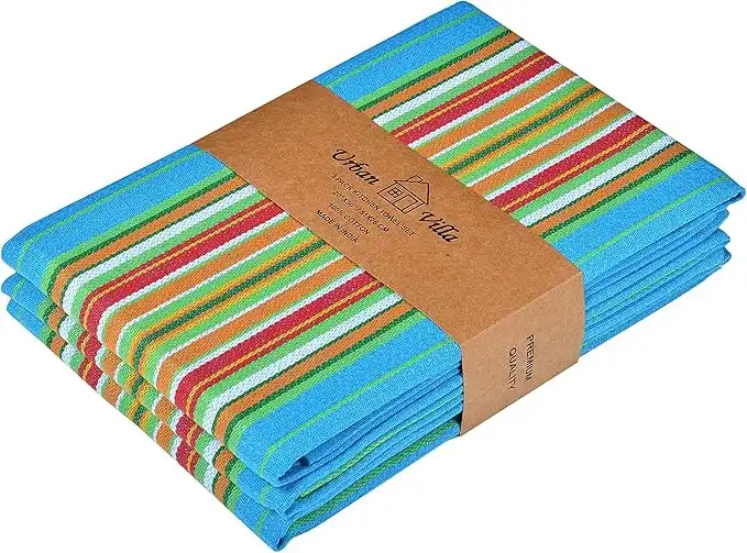 amazon.aeUrban Villa Kitchen Towels Waffle Stripes Kitchen Towels 100% Cotton Azure Blue Color Kitchen Towels Set of 3 Size: 20x30 Inches Ultra Soft with Highly Absorbent Mitered Corner Kitchen Towels Towels