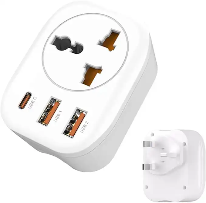 USA/EU/CN to UAE UK HK Plug Adapter, Type G Travel Converter, Universal Socket Travel Adaptor with 2USB+Type-C port for Business Trip Holiday Hotel Airport-White