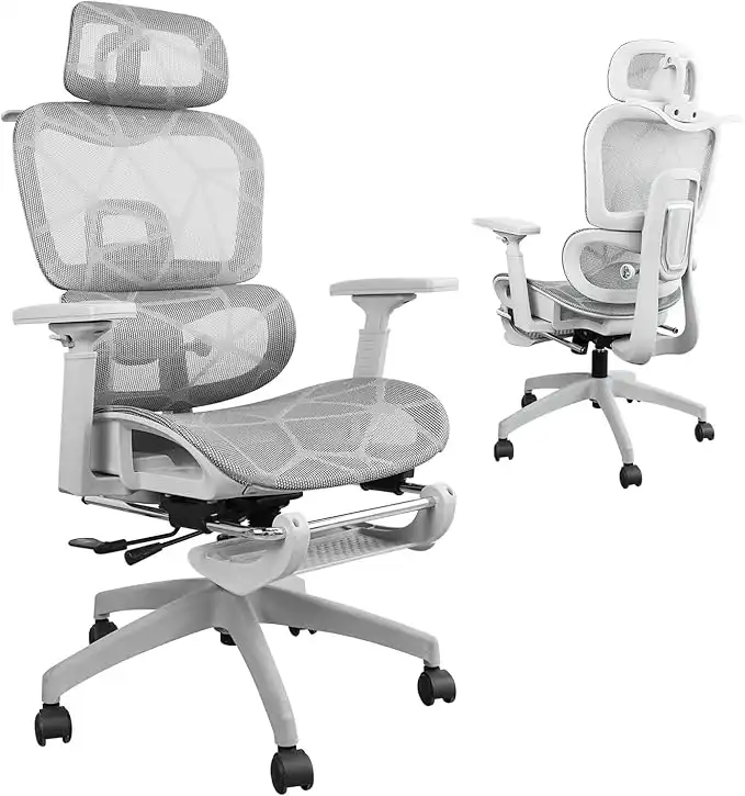 amazon.aeUSOR Ergonomic Mesh Office Chair, High Back Desk Chair - Adjustable Headrest with Flip-Up Arms, Tilt Function, Lumbar Support and PU Wheels, Swivel Computer Task Chair with Footrest Gray