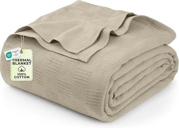 amazon.aeUtopia Bedding 100% Cotton Blanket (Full Size - 90x84 Inches) 350GSM Lightweight Thermal Blanket, Soft Breathable Blanket for All Seasons (Khaki)