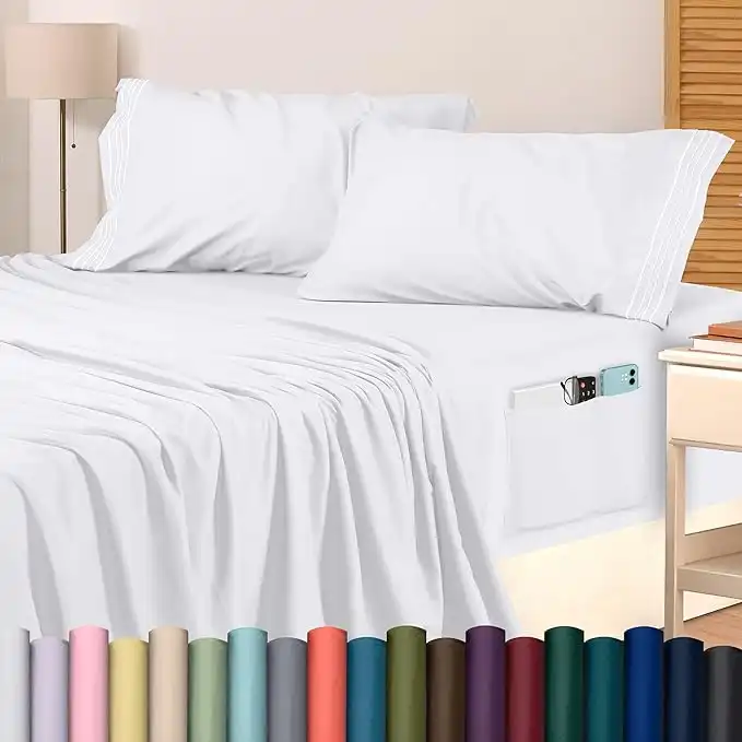 amazon.aeUtopia Bedding California King Sheet Set – Soft Microfiber 4 Piece Hotel Luxury Bed Sheets with Deep Pockets - Embroidered Pillow Cases - Side Storage Pocket Fitted Sheet - Flat Sheet (White)