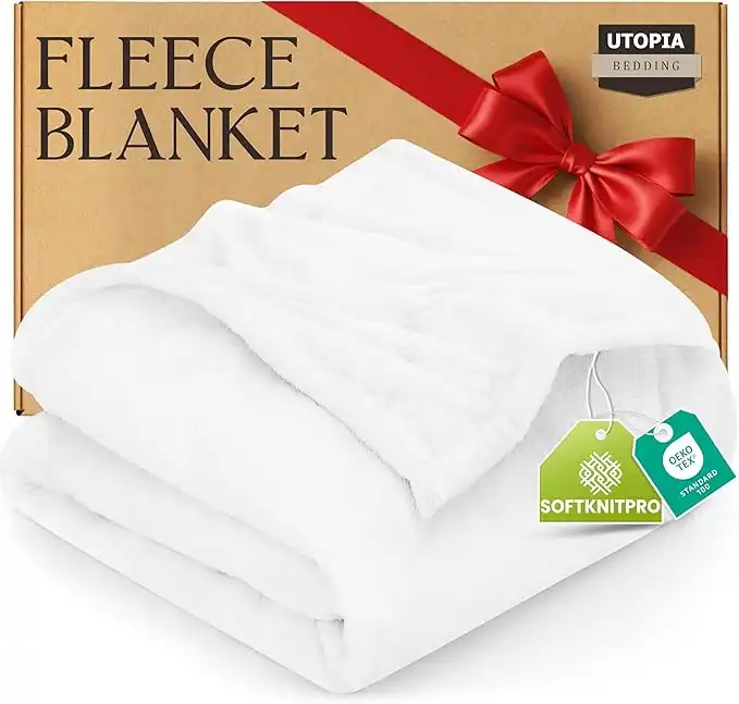 amazon.aeUtopia Bedding Fleece Blanket - 300GSM Luxury Bed Blanket Anti-Static Fuzzy Soft Blanket Microfiber (90x66 Inches), White, Twin