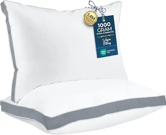 Utopia Bedding Gusseted Pillow (2-Pack) Premium Quality Bed Pillows - Side Back Sleepers - Grey Gusset - Queen - 18 x 26 Inches