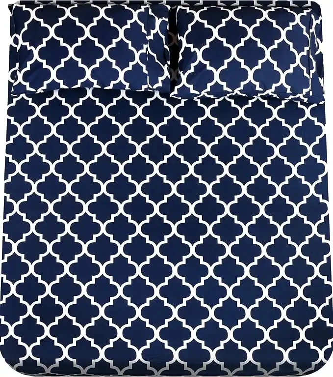 Utopia Bedding Printed Bed Sheet Set – 1 Fitted & Flat Sheet with 2 Pillowcases – Wrinkle, Shrinkage and Fade Resistant – Soft Brushed Polyester-Microfiber Fabric (Double, Quatrefoil Navy) — Price History & Tracker | DeserTracker