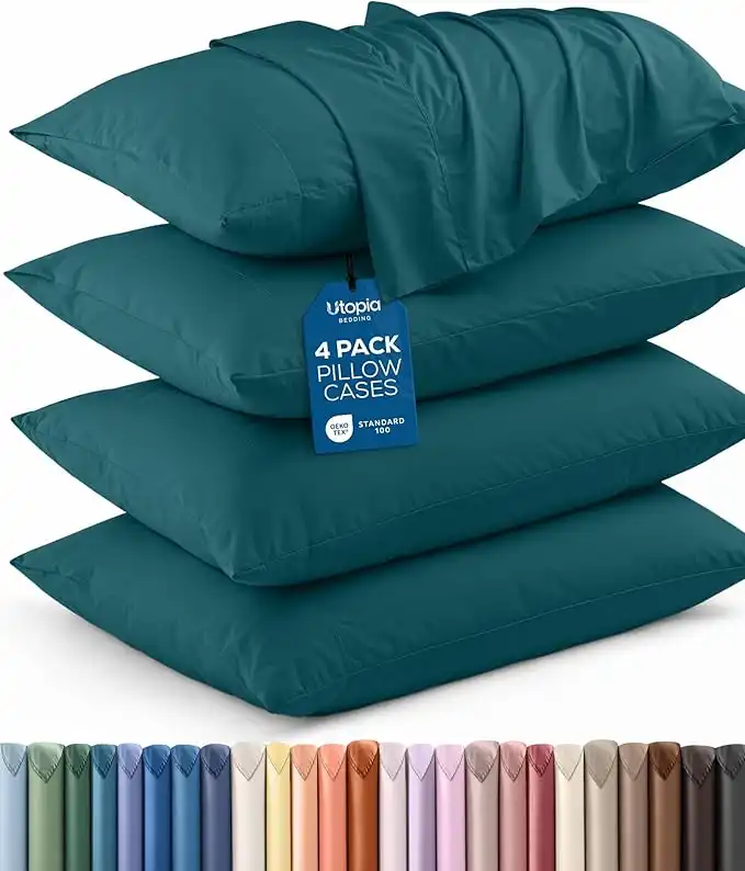 Utopia Bedding Queen Pillow Cases - 4 Pack - Envelope Closure - Soft Brushed Microfiber Fabric - Shrinkage and Fade Resistant Pillow Cases Queen Size 20 X 30 Inches (Queen, Teal)