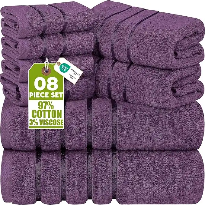 Utopia Towels 8-Piece Luxury Towel Set, 2 Bath Towels, 2 Hand Towels, and 4 Wash Cloths,97% Ring Spun Cotton Highly Absorbent Viscose Stripe Towels Ideal for Everyday use (Plum) — Price History & Tracker | DeserTracker