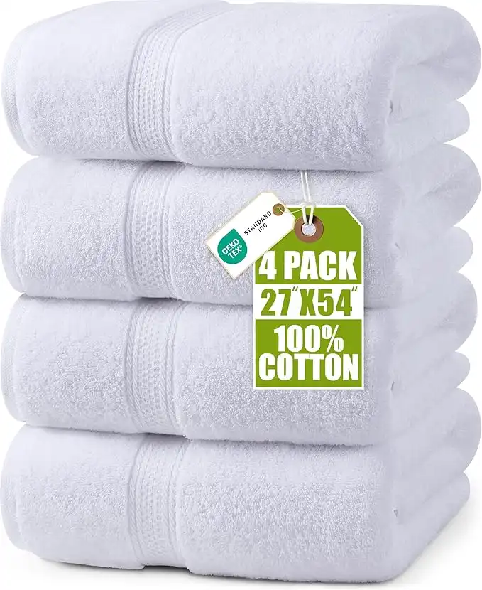 Utopia Towels - Bath Towels Set, White - Premium 600 GSM 100% Ring Spun Cotton - Quick Dry, Highly Absorbent, Soft Feel Towels, Perfect for Daily Use (4-Pack)…