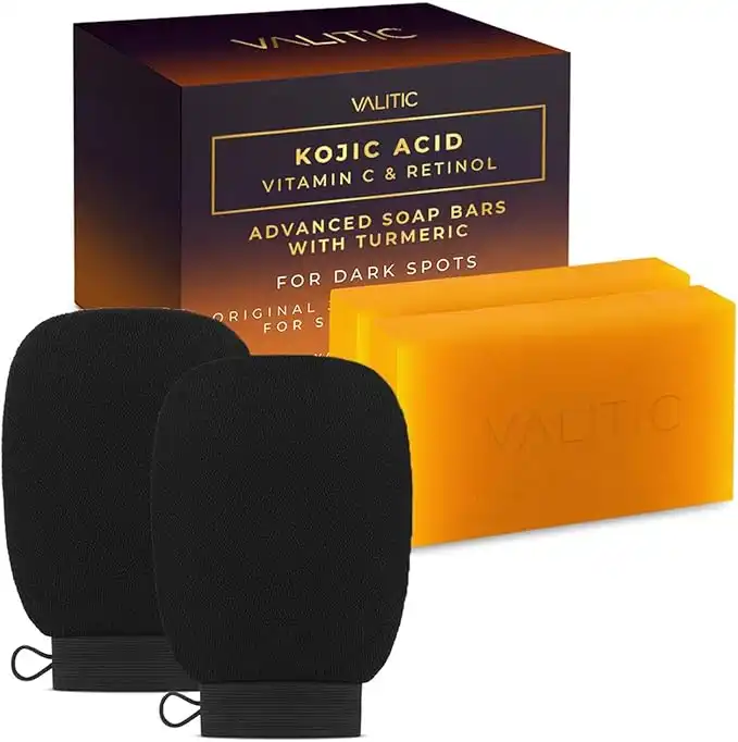 VALITIC 2 Pack Kojic Acid Vitamin C & Retinol Soap Bars for Dark Spot Bundle with 2 Black Exfoliating Gloves for Body Scrubs — Price History & Tracker | DeserTracker