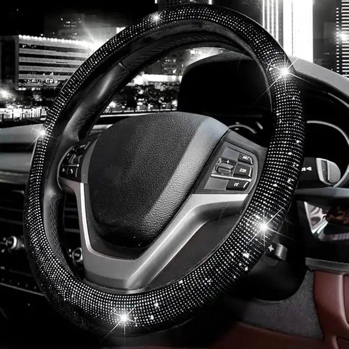 amazon.aeValleycomfy Steering Wheel Cover Bling Bling Crystal Diamond Sparkling Car SUV Wheel Protector Universal Fit 15 Inch (Black Diamond, Standard Size(14'' 1/2-15'' 1/4)) (tangzuan2)