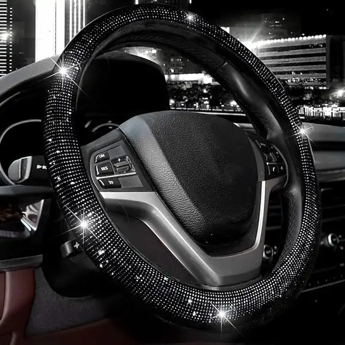 amazon.aeValleycomfy Steering Wheel Cover for Women Men Bling Bling Crystal Diamond Sparkling Car SUV Wheel Protector Universal Fit 15 Inch (Black with Black Diamond, Standard Size(14" 1/2-15" 1/4))