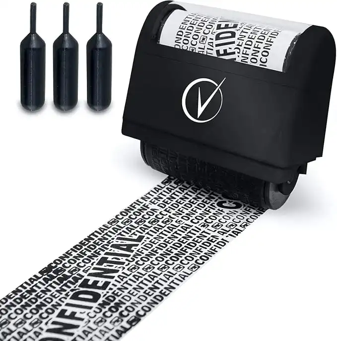 Vantamo Address Blocker Stamp for Hiding Sensitive Information, Wide Identity Theft Protection Roller Stamp with 3 Refills, Confidential Ink Roller for Personal Data Theft Prevention, Classy Black