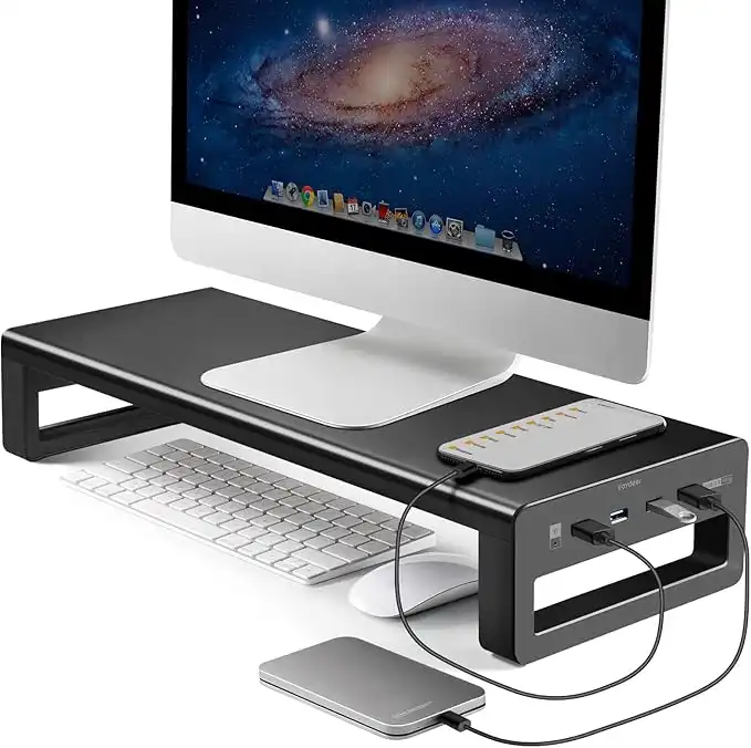 VAYDEER USB 3.0 Aluminum Monitor Stand Metal Riser Support Transfer Data,Keyboard and Mouse Storage Desk Organizer for Laptop,Computer,Notebook,MacBook(Monitor Size Up to 27 inches)(Black) — Price History & Tracker | DeserTracker