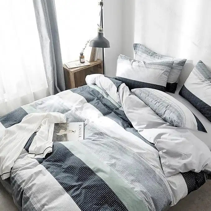 VClife Boy Cotton Duvet Cover Twin Stripe Pattern Bedding Sets Lightweight Soft Blue Grey Mist Green Geometric Duvet Cover with Zipper Closure — Price History & Tracker | DeserTracker