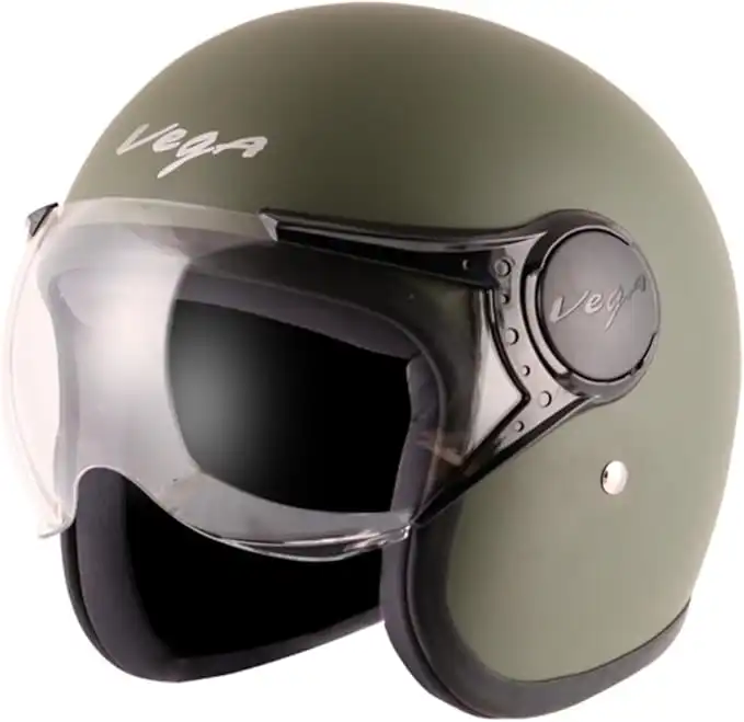 Vega Jet ISI DOT Certified Matt Finish Open Face Helmet for Men and Women with Clear Visor(Dull Army Green, Size:L) — Price History & Tracker | DeserTracker