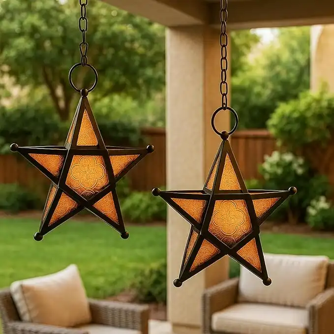 amazon.aeVela Lanterns Decorative Hanging Star Candle Lanterns, Amber, Set of 2