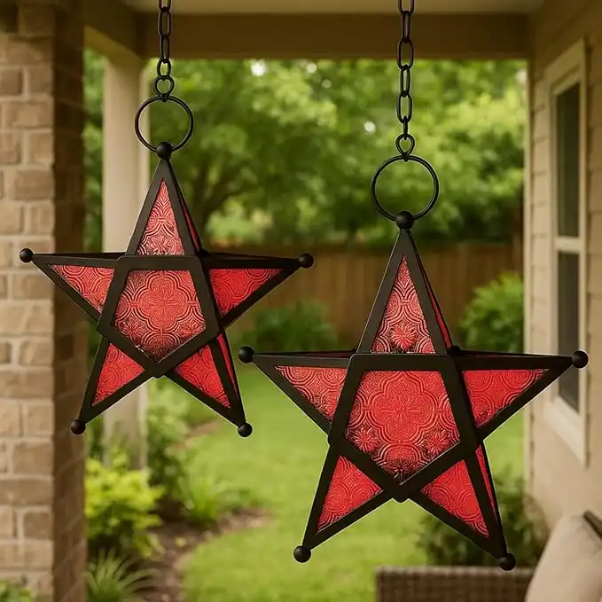 Vela Lanterns Decorative Hanging Star Candle Lanterns, Red, Set of 2