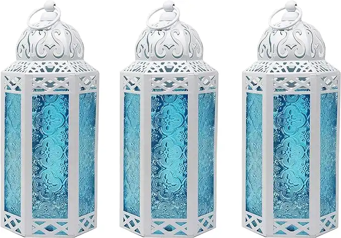 Vela Lanterns White Moroccan Lamp Lantern Decorative Candle Holder for Indoor Outdoor Home Decor, Patio, Weddings, Ramadan Decorations, Blue Glass, Medium, Set of 3 — Price History & Tracker | DeserTracker