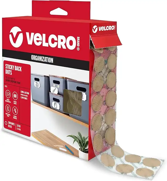 VELCRO Brand Sticky Back Dots | 200 Pk, Beige | 3/4" Circles | Perfect for Classroom, Home or Office | Adhesive Backed Round Hook and Loop Strips, 90140
