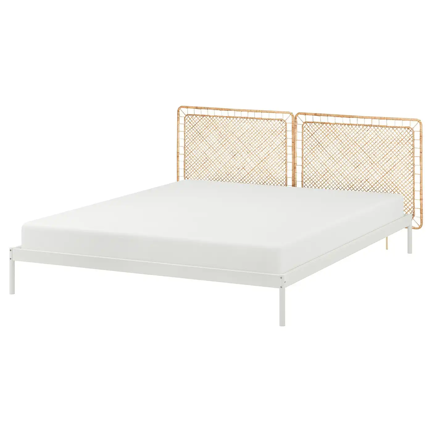 VEVELSTAD bed frame with 2 headboards, white/Tolkning rattan, 180x200 cm - IKEA