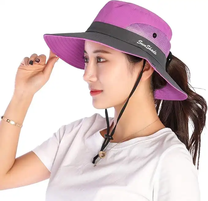 VICSPORT Women Sun Hat Wide Brim Bucket Mesh Boonie Cap Outdoor Fishing Hats UV Protection Purple — Price History & Tracker | DeserTracker