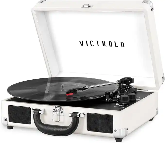 Victrola Vintage 3-Speed Bluetooth Portable Suitcase Record Player with Built-in Speakers | Upgraded Turntable Audio Sound,VSC-550BT-WHT, White/Silver