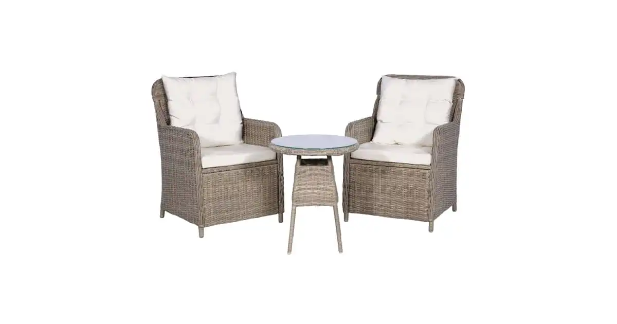 Vidaxl 3 Piece Bistro Set With Cushions Poly Rattan Grey