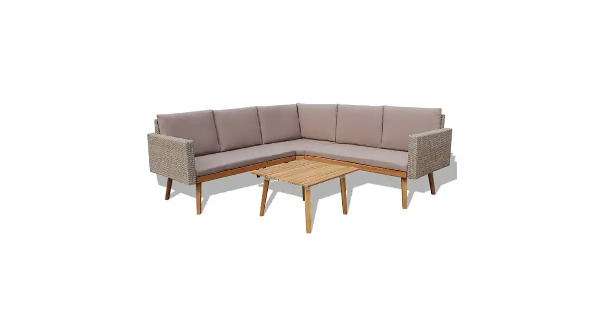 vidaXL 4 Piece Garden Lounge Set with Cushions Poly Rattan Brown