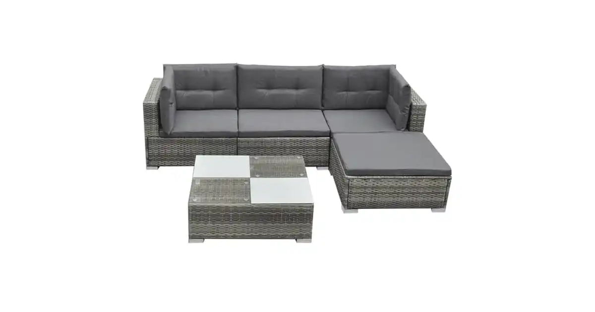 Vidaxl 5 Piece Garden Lounge Set With Cushions Poly Rattan Grey