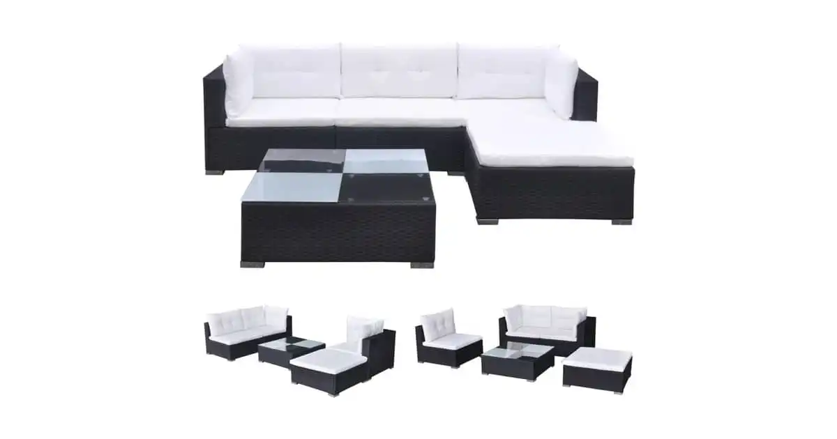 Vidaxl 5 Piece Garden Lounge Set With Cushions Poly Rattan Black