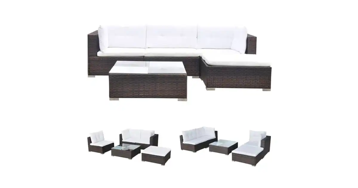 Vidaxl 5 Piece Garden Lounge Set With Cushions Poly Rattan Brown