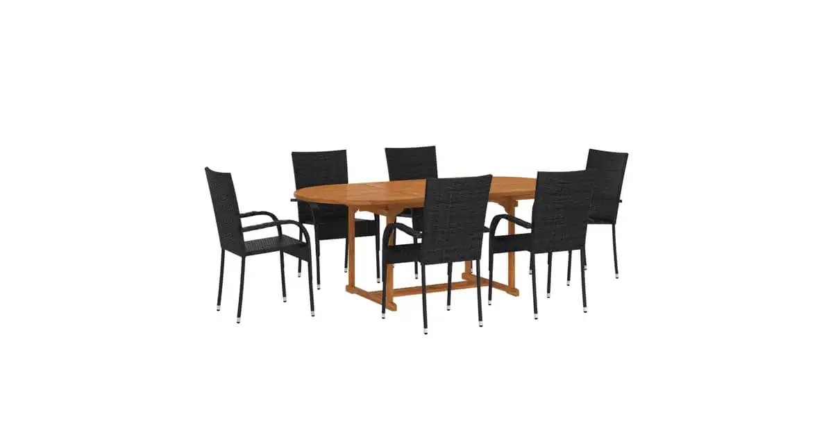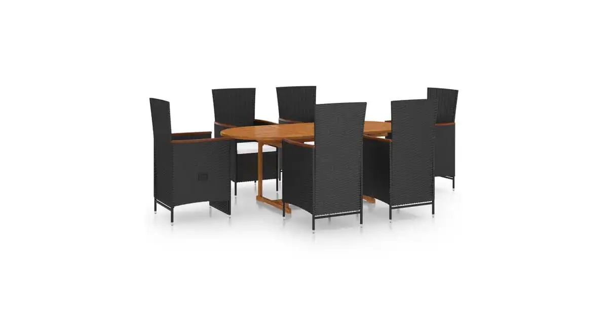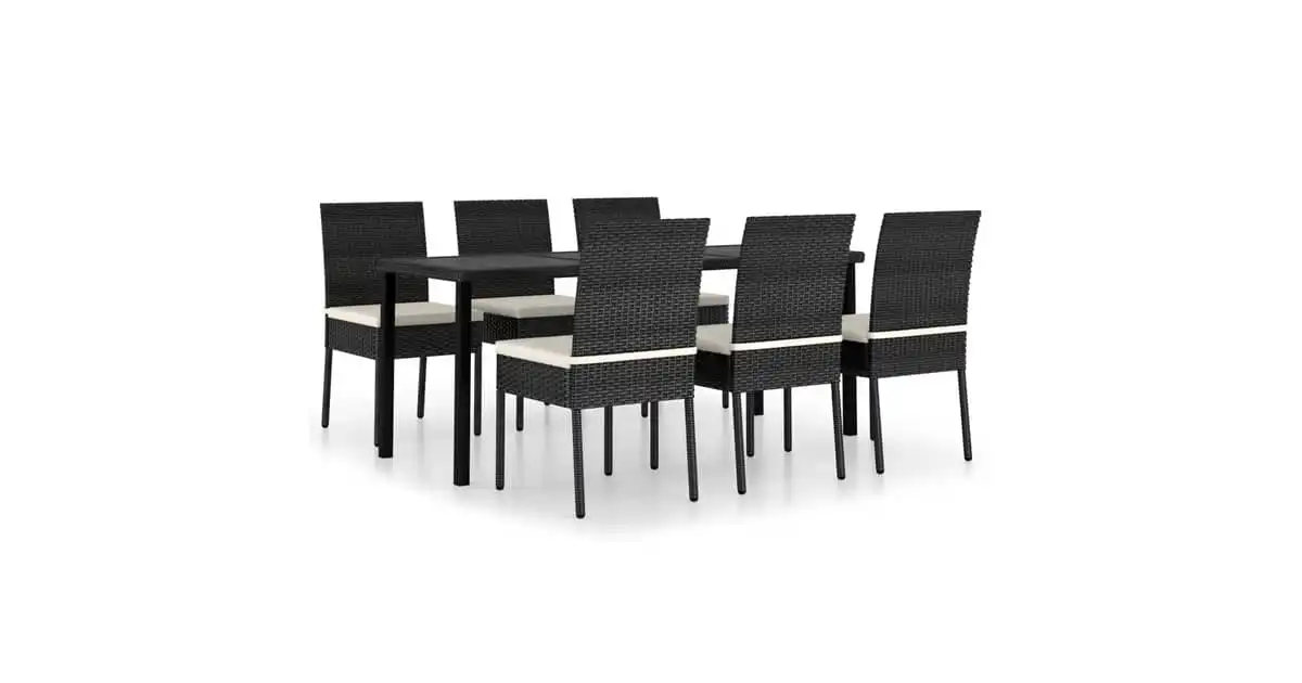 Vidaxl 7 Piece Garden Dining Set Poly Rattan Black