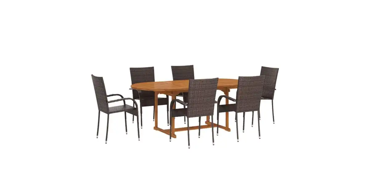Vidaxl 7 Piece Garden Dining Set Poly Rattan Brown