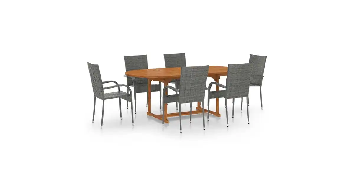 Vidaxl 7 Piece Garden Dining Set Poly Rattan Grey