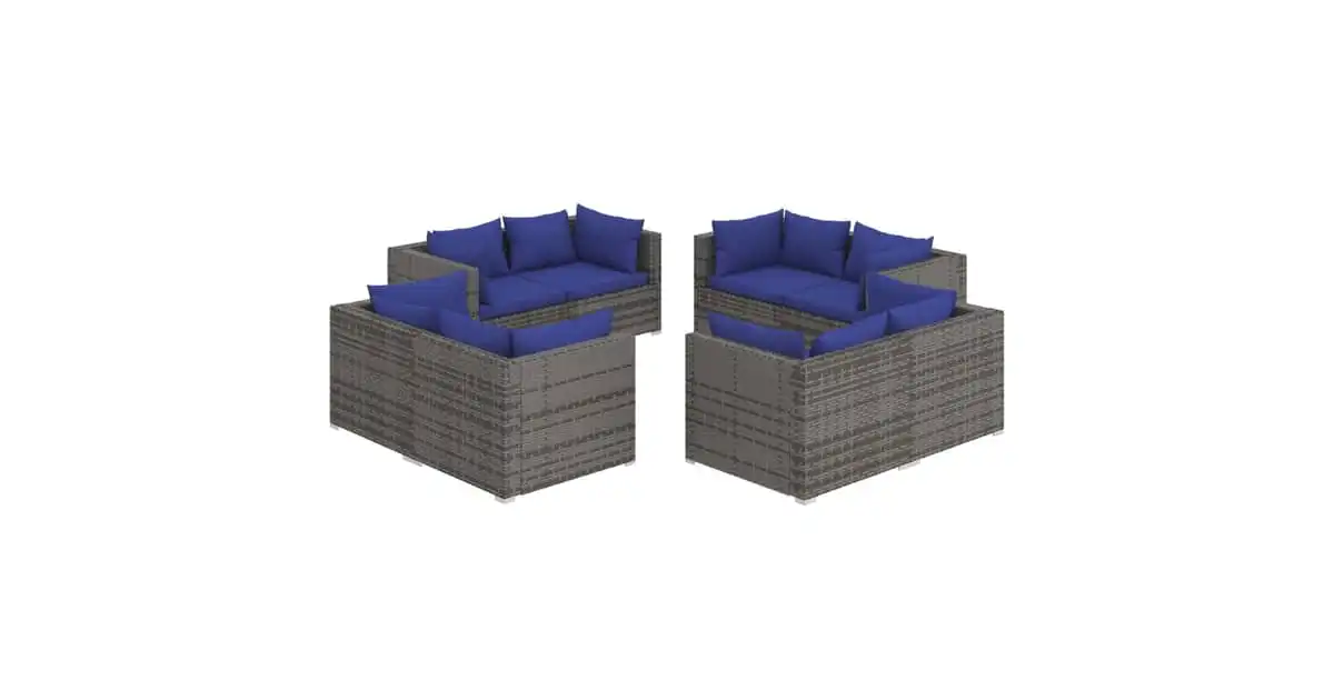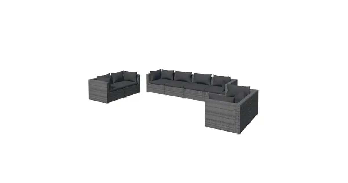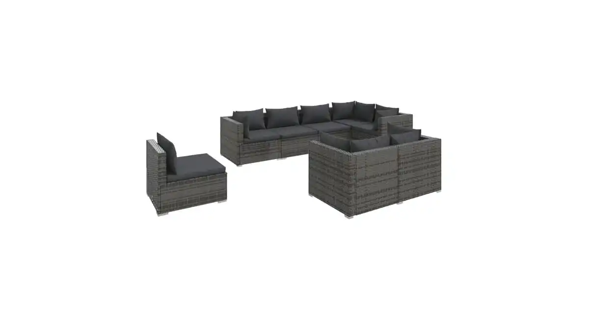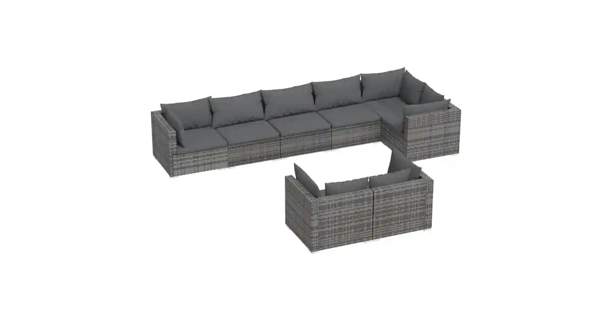 vidaXL 8 Piece Garden Lounge Set with Cushions Poly Rattan Grey