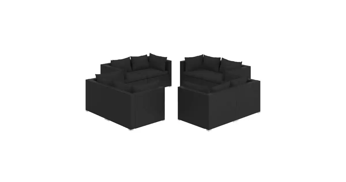 vidaXL 8 Piece Garden Lounge Set with Cushions Poly Rattan Black