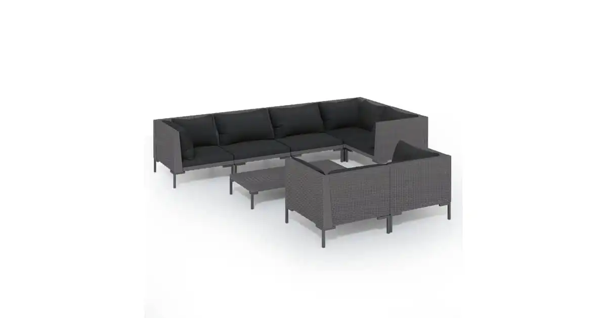 vidaXL 8 Piece Garden Lounge Set with Cushions Poly Rattan Dark Grey