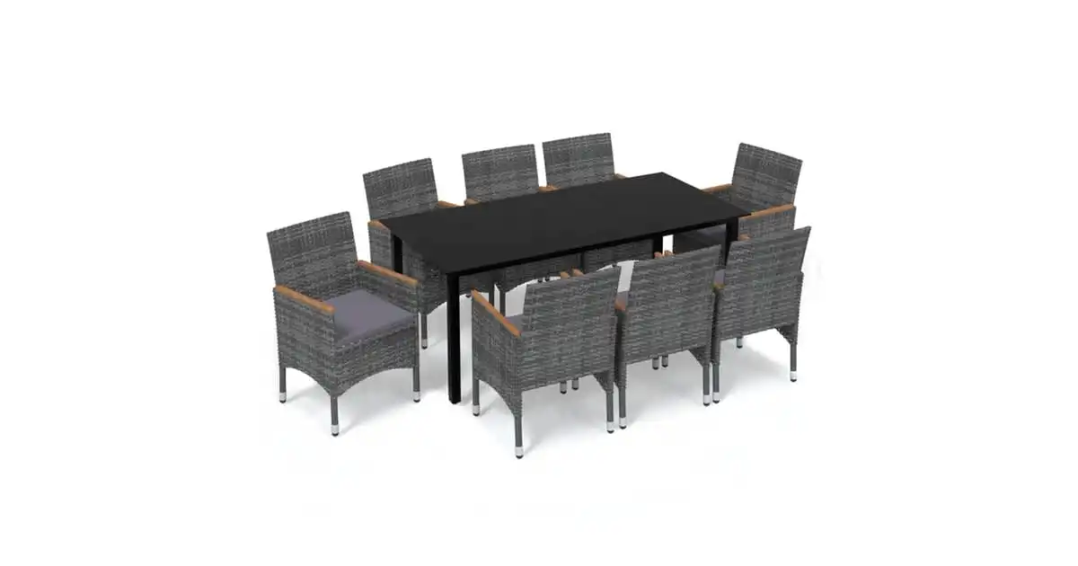 vidaXL 9 Piece Garden Dining Set with Cushions Poly Rattan Grey