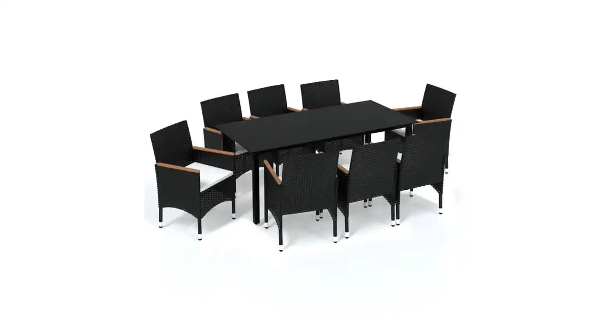 vidaXL 9 Piece Garden Dining Set with Cushions Poly Rattan Black