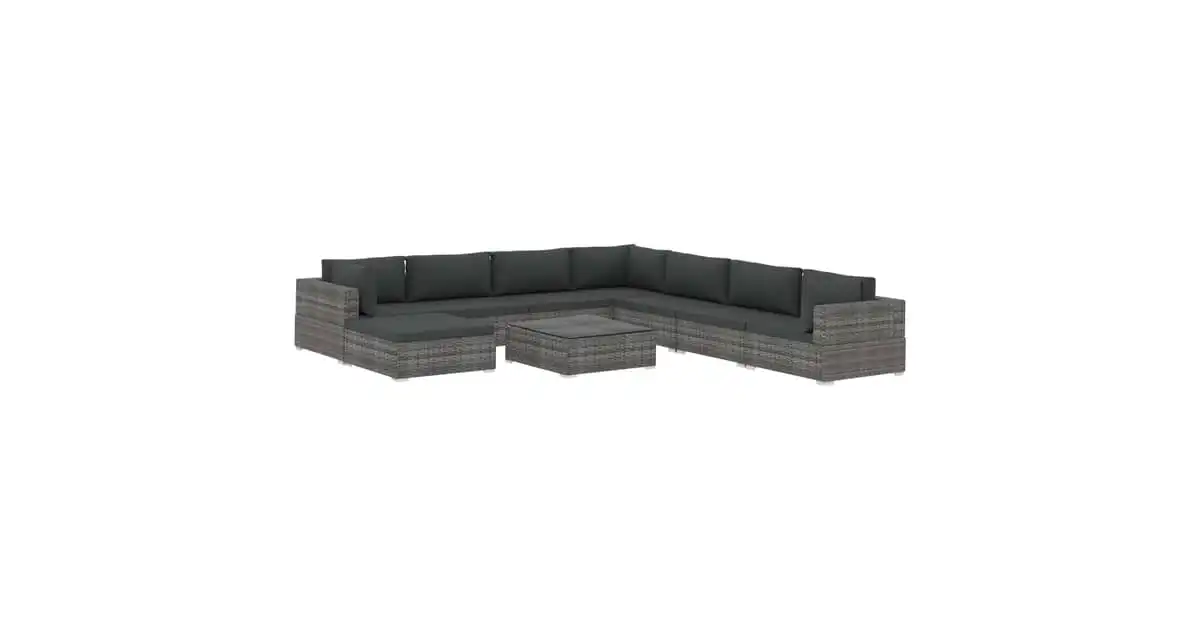 vidaXL 9 Piece Garden Lounge Set with Cushions Poly Rattan Grey