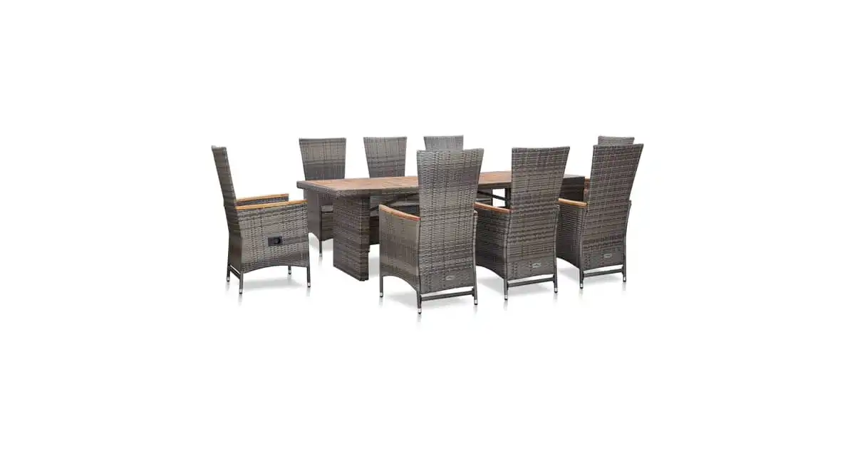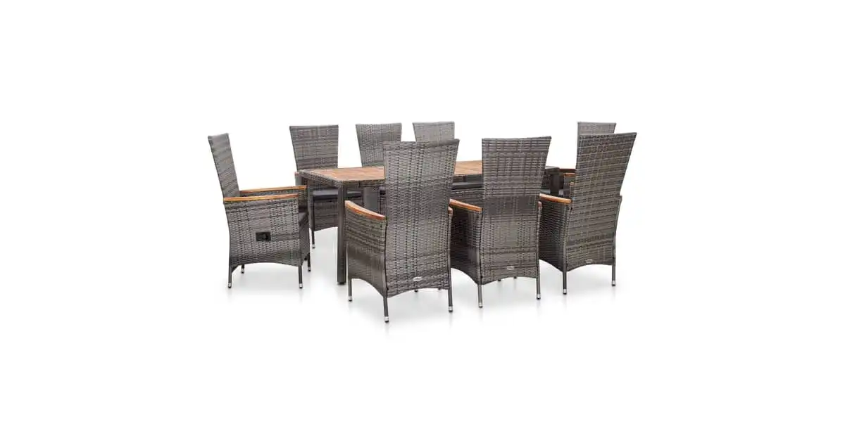 vidaXL 9 Piece Garden Dining Set with Cushions Poly Rattan Grey