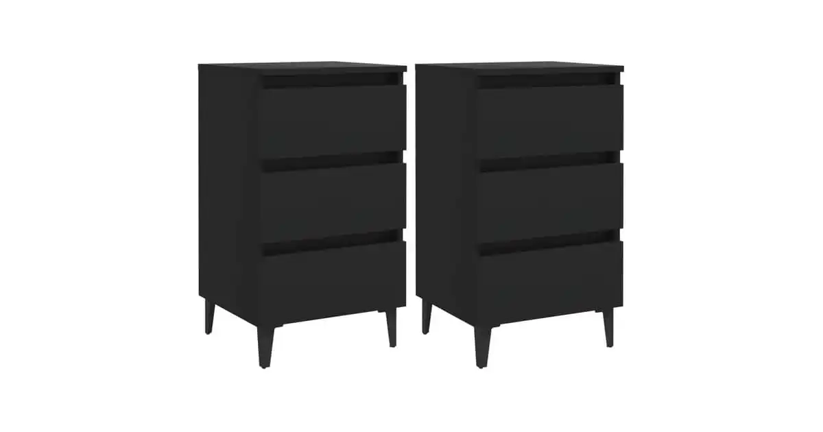Vidaxl Bed Cabinet With Metal Legs 2 Pcs Black 40x35x69 Cm