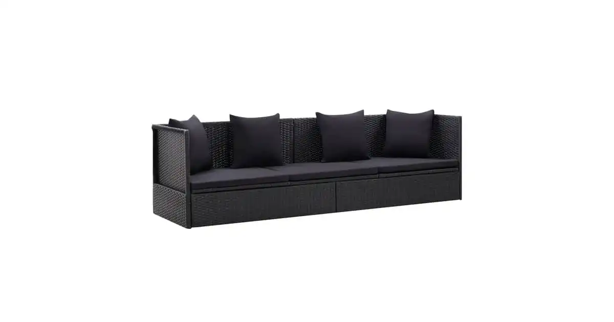 Vidaxl Garden Bed With Cushion & Pillows Poly Rattan Black