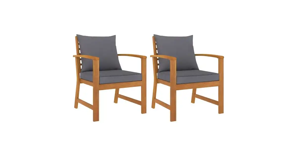 vidaXL Garden Chairs 2 pcs with Dark Grey Cushion Solid Acacia Wood