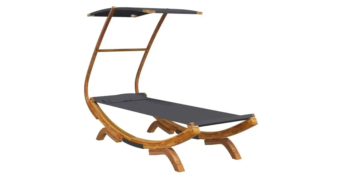 vidaXL Outdoor Lounge Bed with Canopy 100x190x134 cm Solid Bent Wood Anthracite