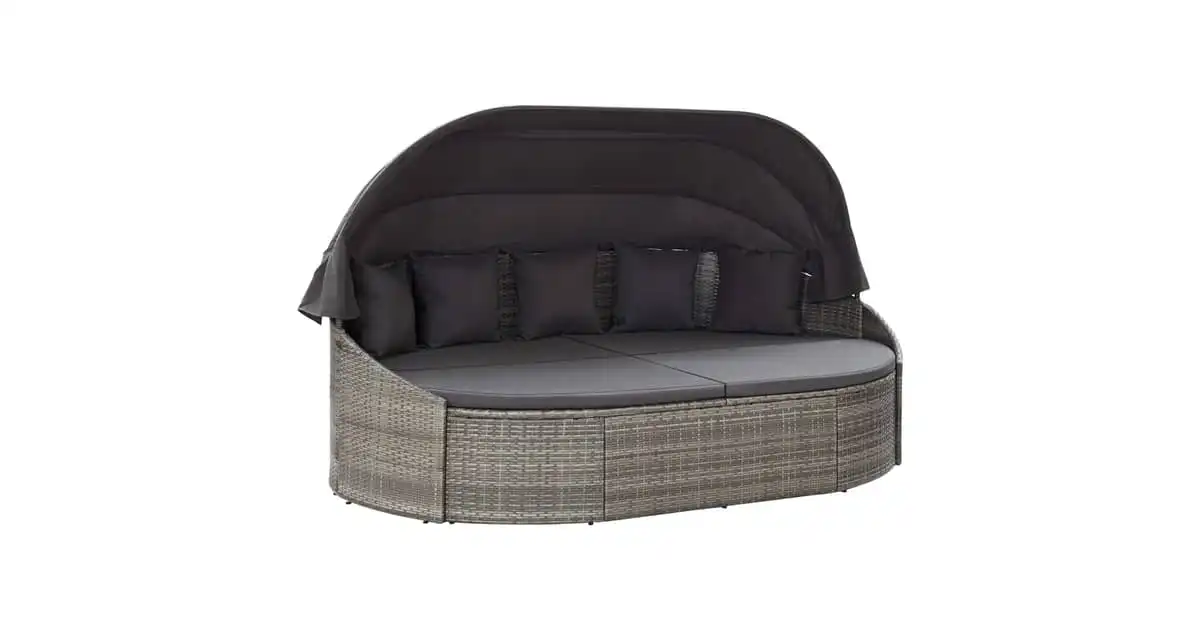 Vidaxl Outdoor Lounge Bed With Canopy Poly Rattan Grey